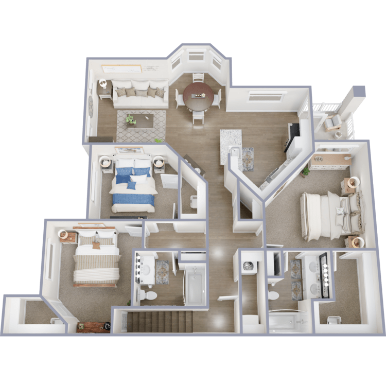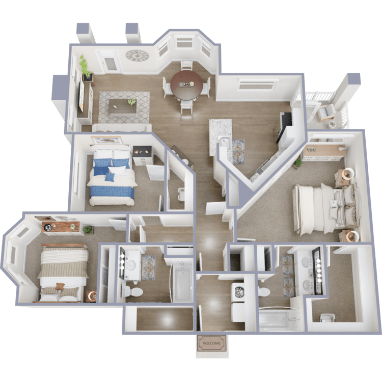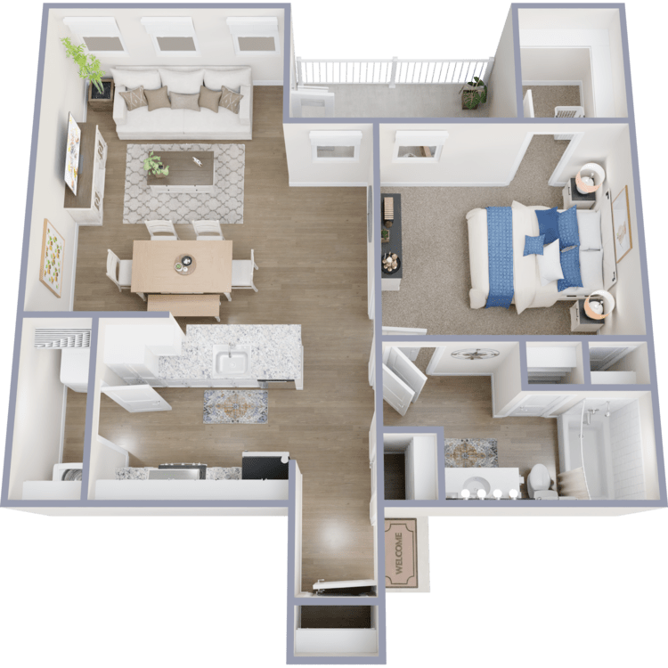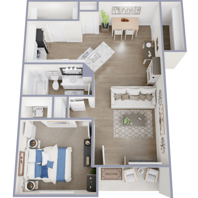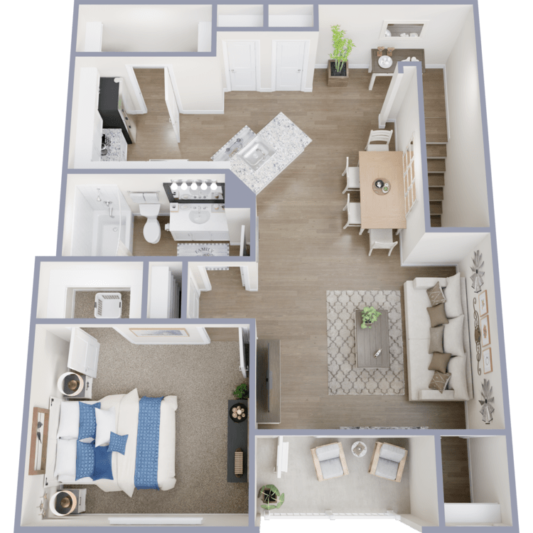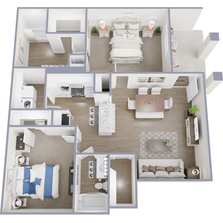 Explore the luxurious apartment options at The Ranch at Sienna apartments in Missouri City, TX, featuring ten beautifully designed floor plans to suit your lifestyle. Choose from our one, two, or three-bedroom apartments for rent. Each beautifully crafted home offers spacious floor plans with soaring 9-foot ceilings that elevate the living experience. Select homes come with attached garages, providing convenience and security. At the same time, the indulgent double sink vanities in the bathrooms add a touch of sophistication to your daily routine.